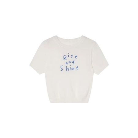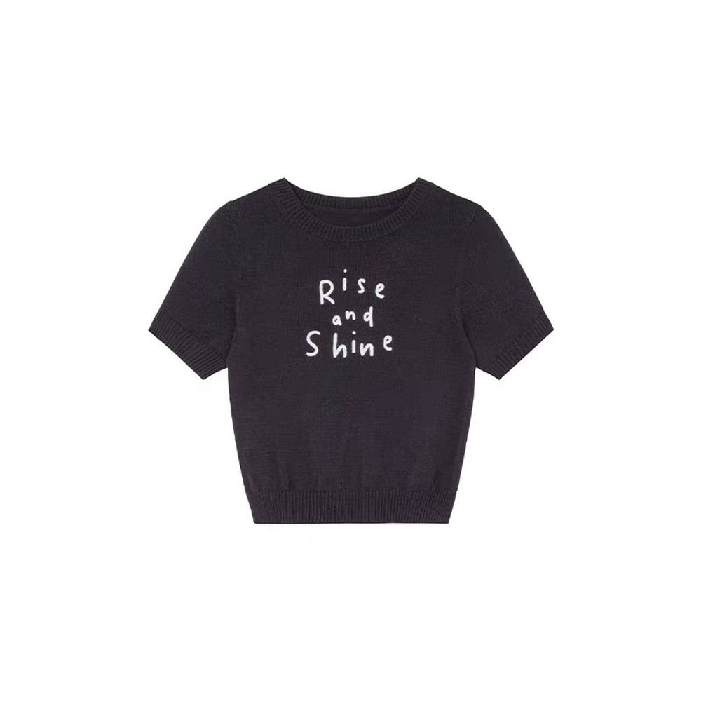 Contrast Color Letter Embroidered Short-Sleeved Sweater Women's T-Shirt