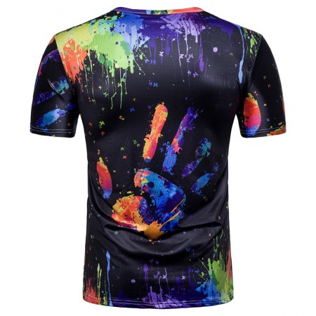 Men's 3D Shirt Splash Ink Printing T-Shirt Palm Printing Graffiti T-Shirt