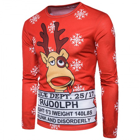 New 3D Personality Printing Fashion Men's Christmas Holiday Long-Sleeved T-Shirt