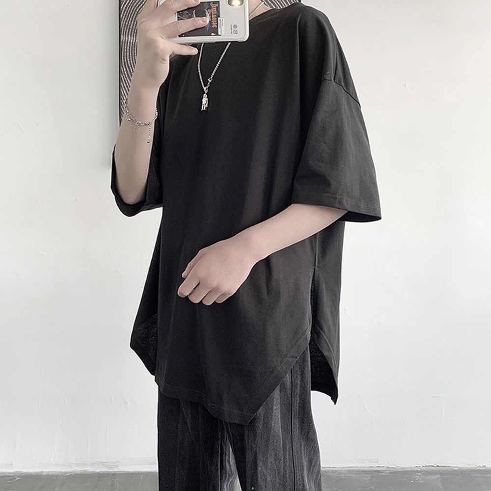 Men's Short-Sleeved T-Shirt With Irregular Large Slits