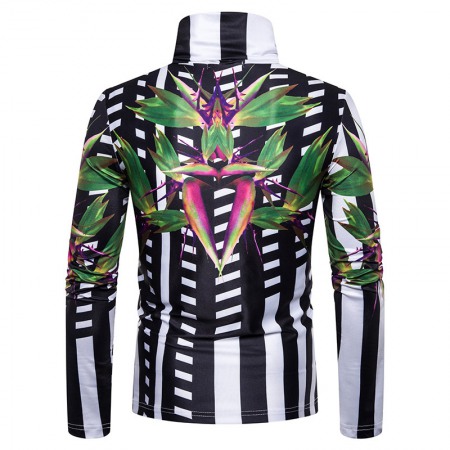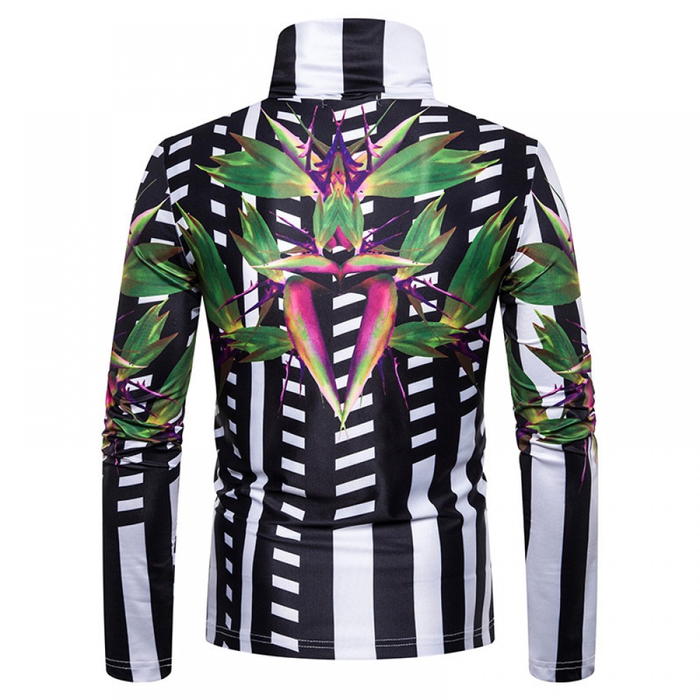 New Men's Plus Size 3D Stripe Printing High Neck Long Sleeve T-Shirt Bottoming Shirt