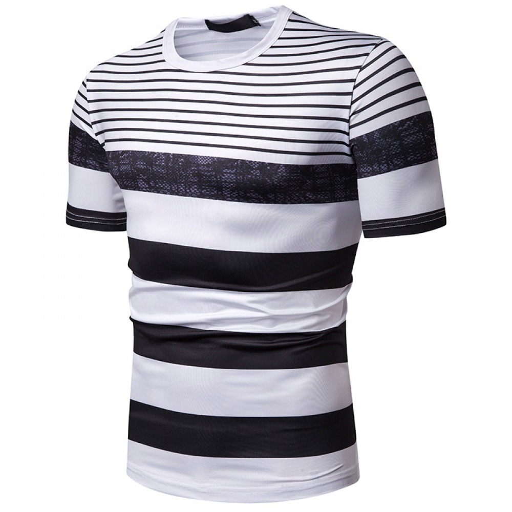 New Summer Men's Short-Sleeved T-Shirt Mens Contrast Striped Slim Casual T-Shirt