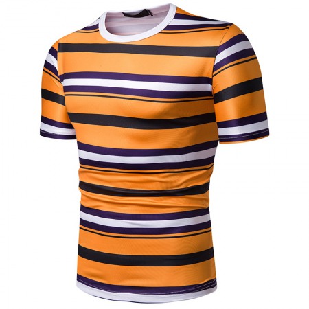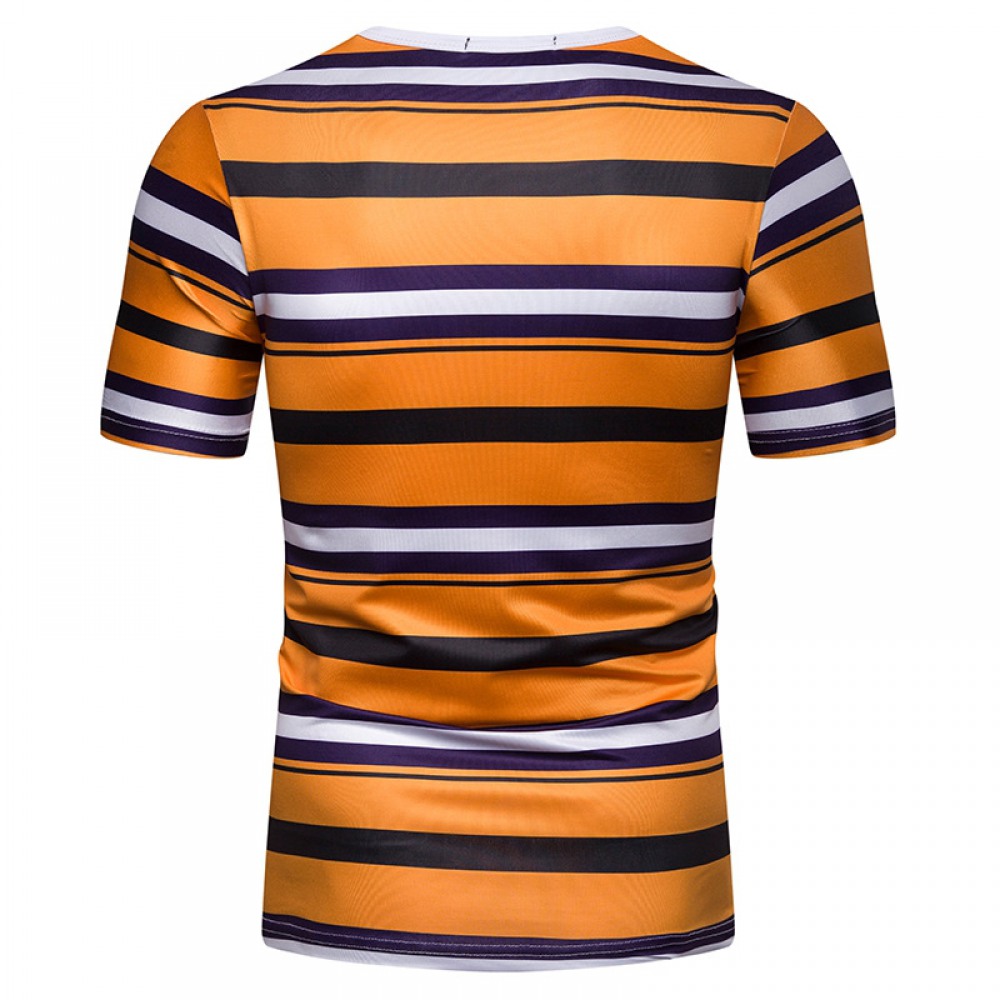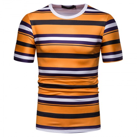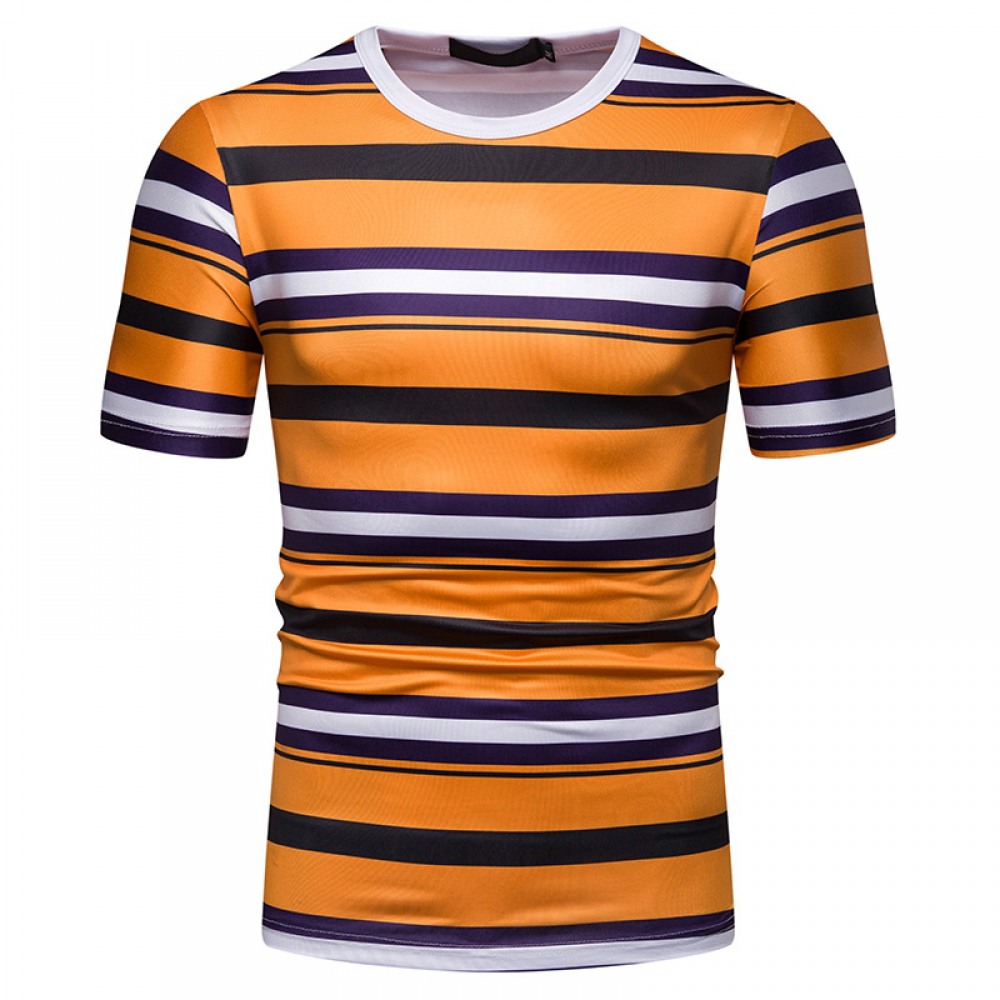 Men's Short-Sleeved T-Shirt Mens Contrast Striped Slim Casual T-Shirt
