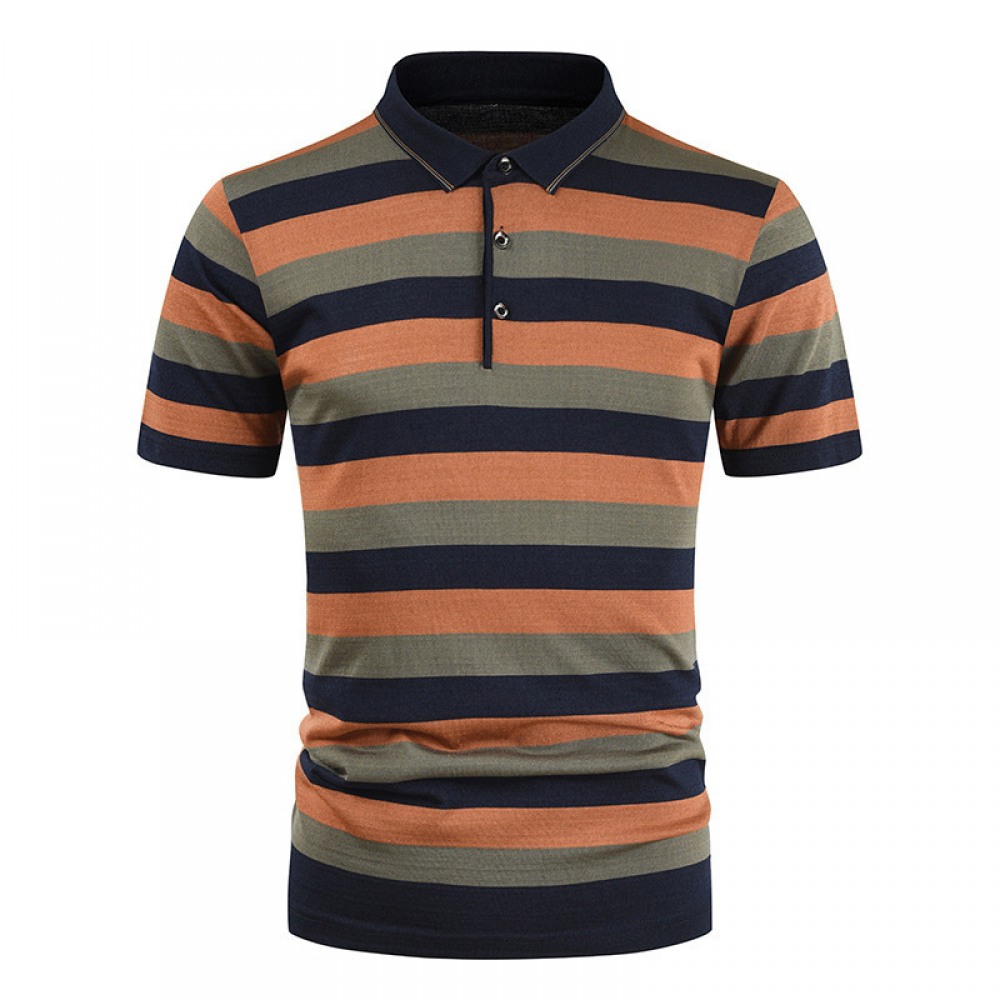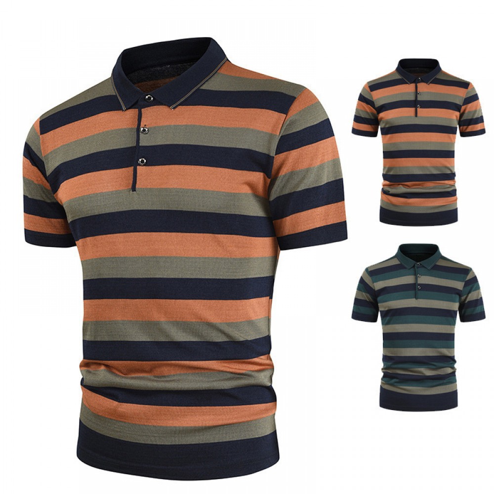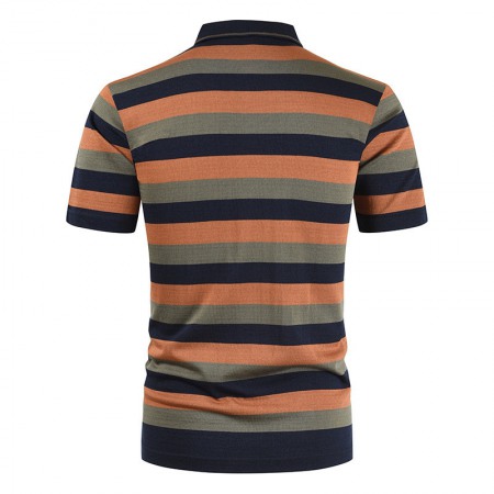 New Summer Men's Striped Color Matching Pockets Men's Casual T-Shirt Short Sleeves