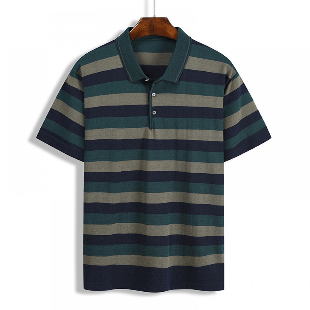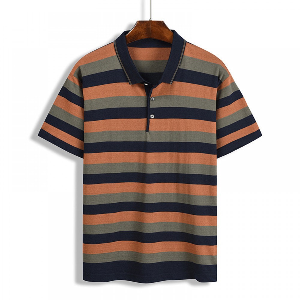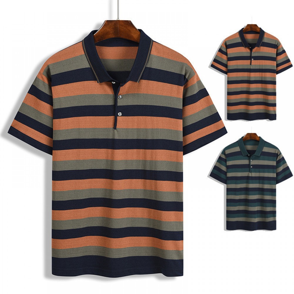 Summer T-Shirt Striped Color Matching Pockets Men's Lapel Short-Sleeved T-Shirt Tops for Men